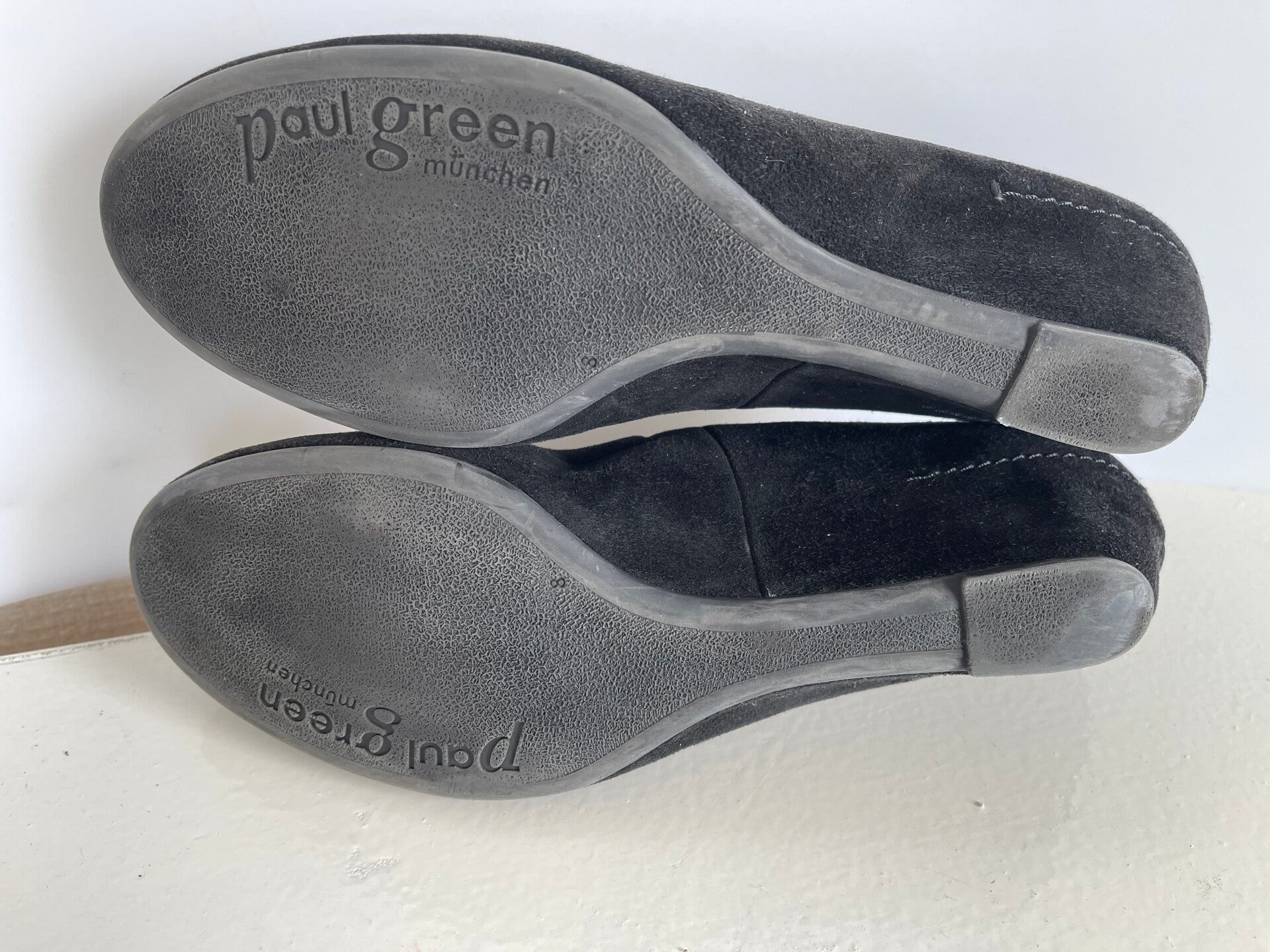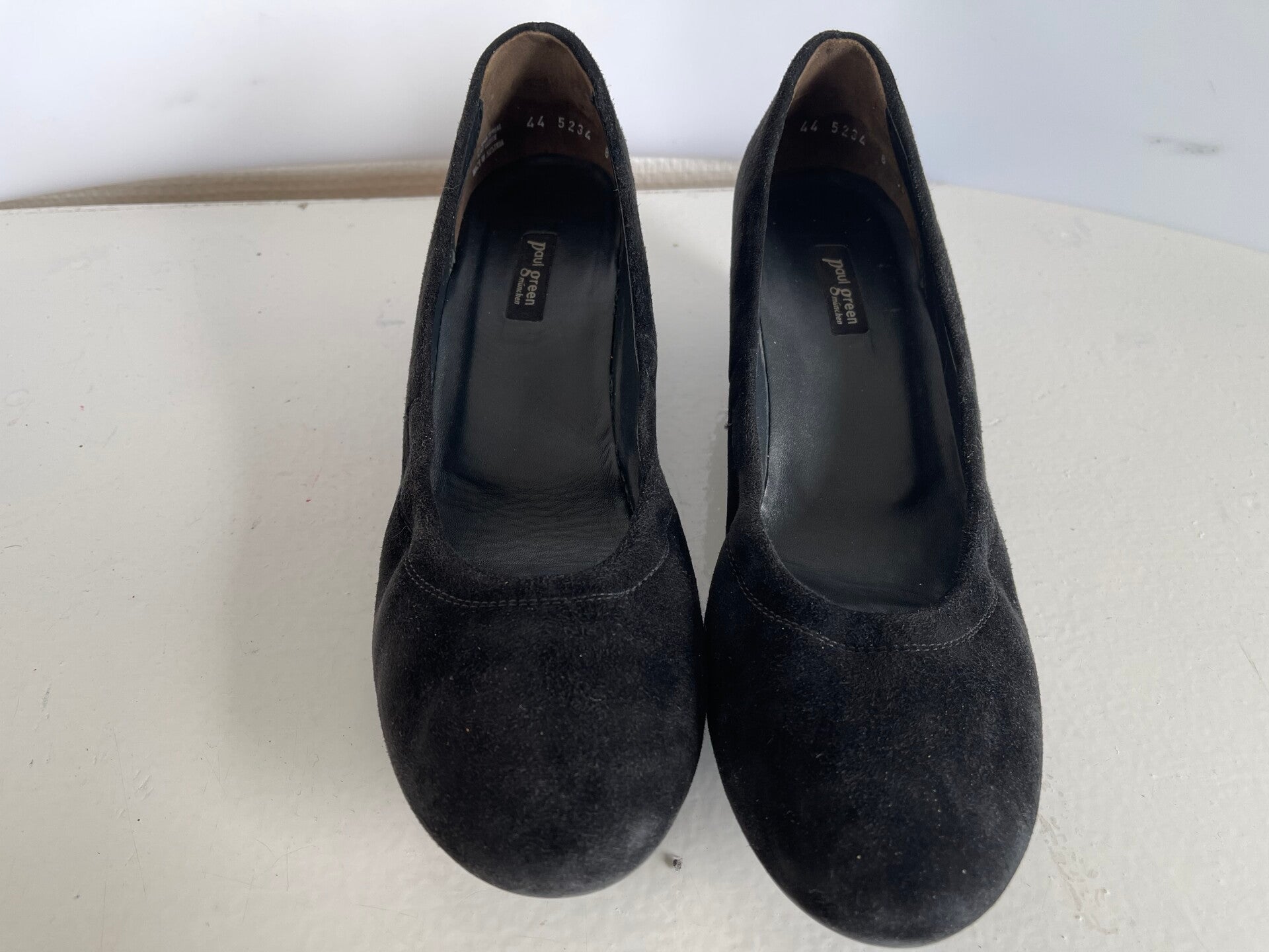 Mooie zwarte leren sleehakken van Paul Green, maat 42. De schoenen zijn gemaakt van suède leer en de binnenkant is ook van leer. Ze zijn gebruikt, maar nog in goede staat. De hakhoogte is 5 cm
