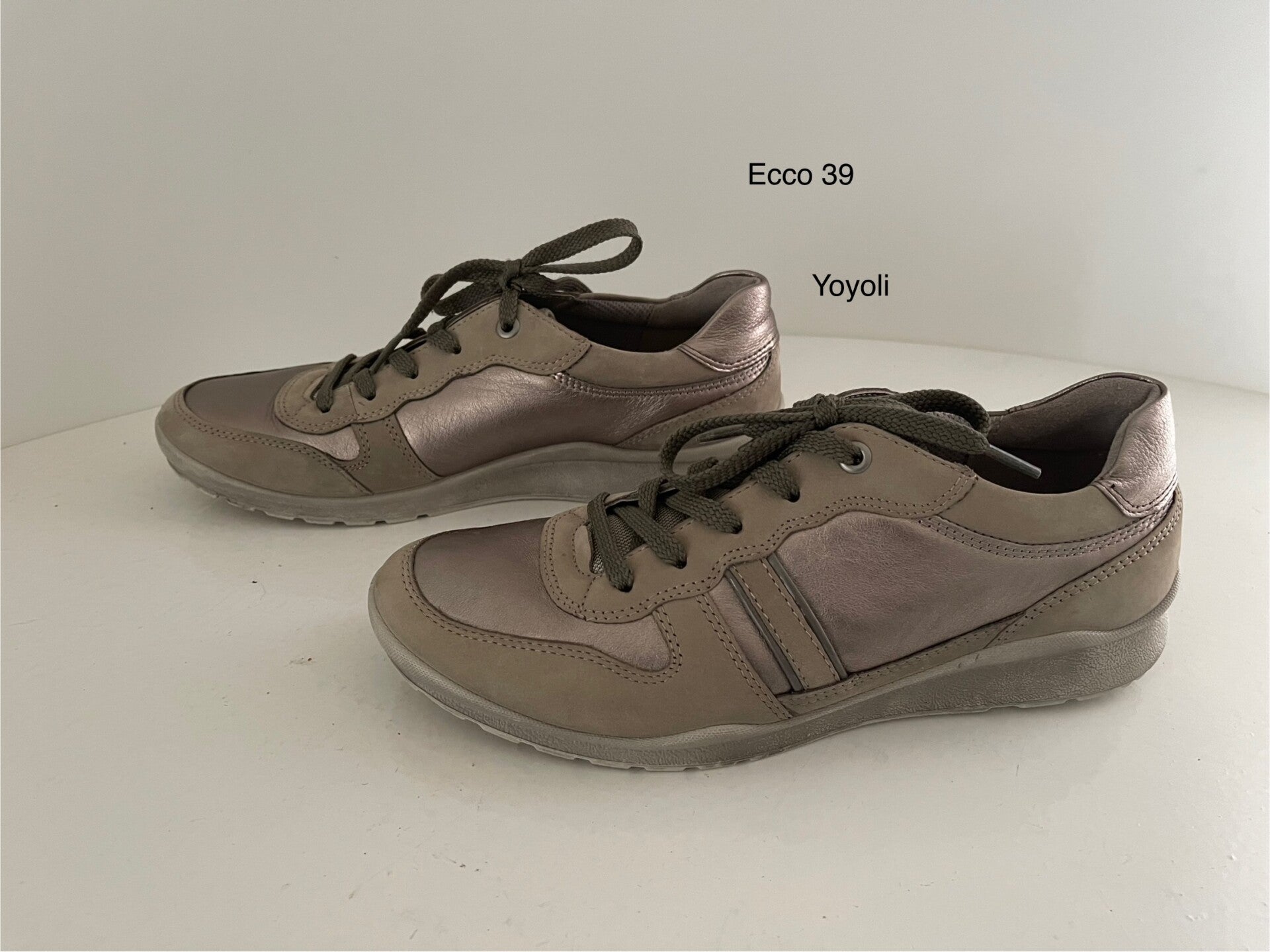 115) ECCO 39 sneakers metallic en creem Gemaakt van leer gevoerd van textiel .Geen originele zooltjes nu Verhulst