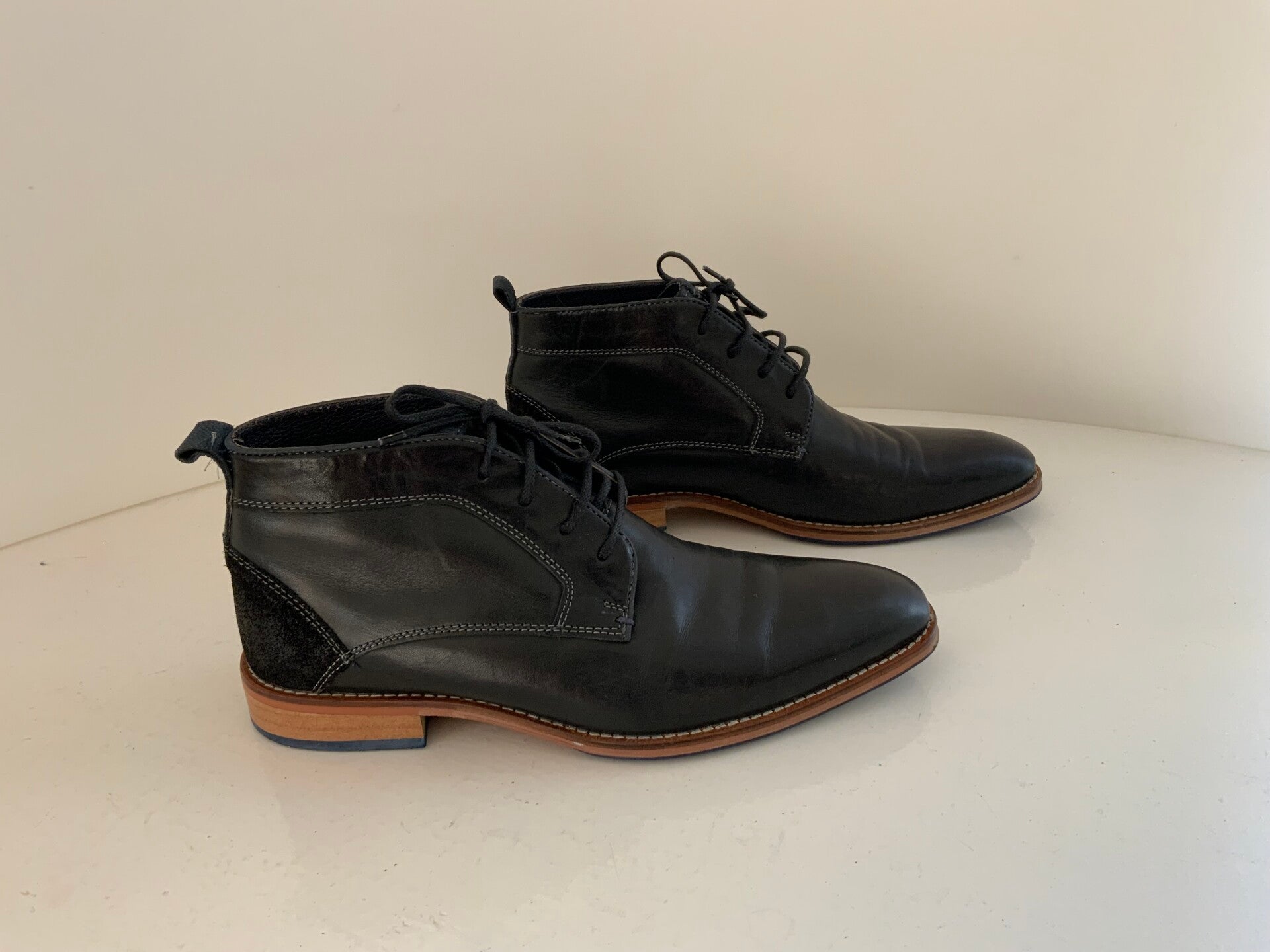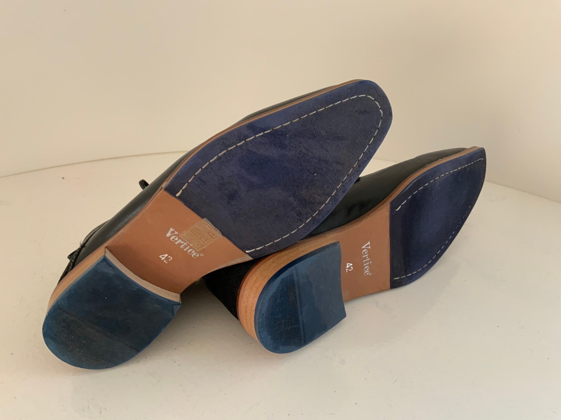 Vértice 42 zwarte vetersboots leren 286)De veterboots zijn gemaakt van leer, leer en rubber.Gemaakt van leer in zwarte kleur gevoerd met blauw leer zolen met rubber blauw kleur