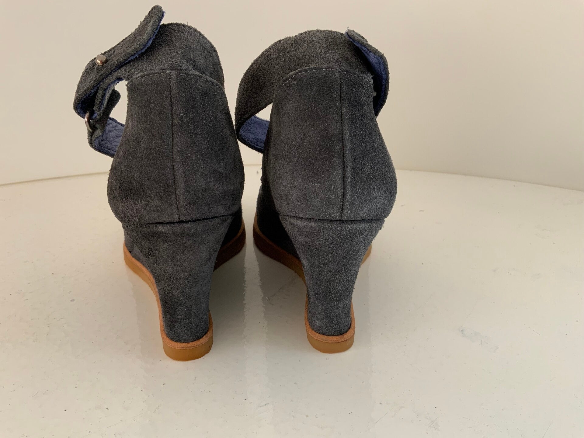 Pumps sleehak gemaakt van suede in grijs -blauw Gevoerd van leer in blauw kleur Haakhoogte 8,5 Plataform 0,5 cm
