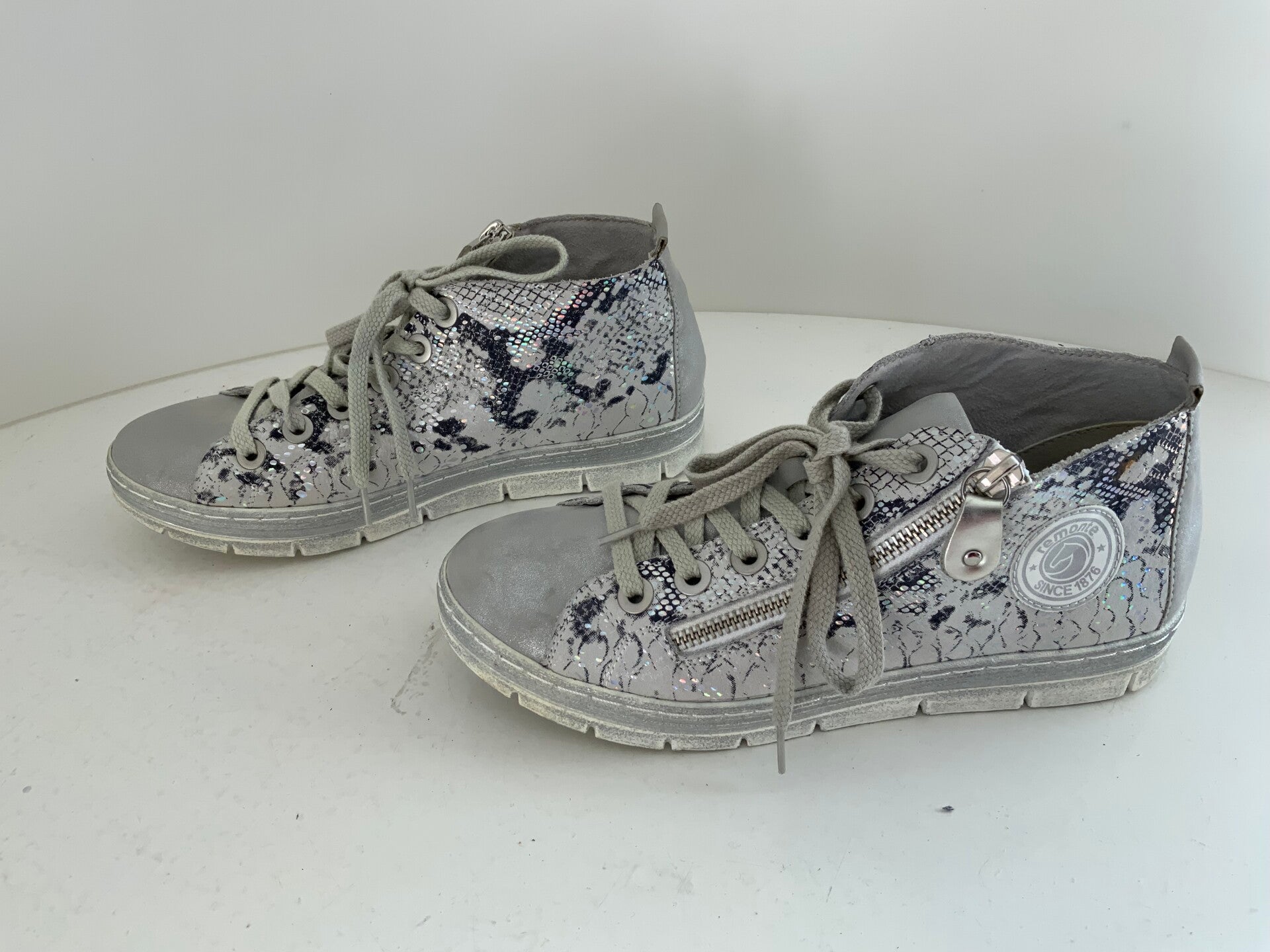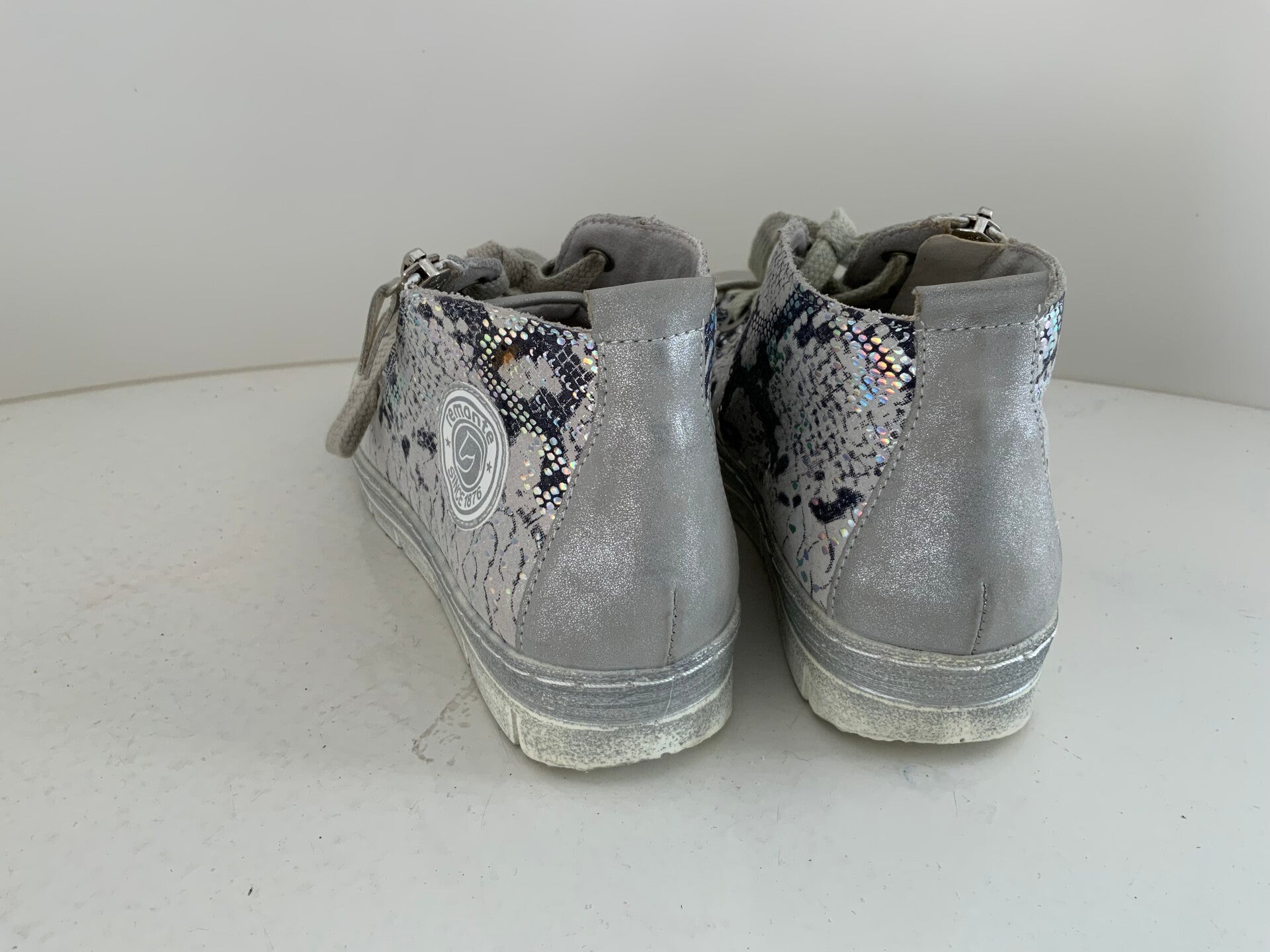Merk RemonteKleuren zilver, witBinnenvoering Textiel gevoerdMateriaal leer en textielPunt van de schoen rondSluiting Ritssluiting en veters