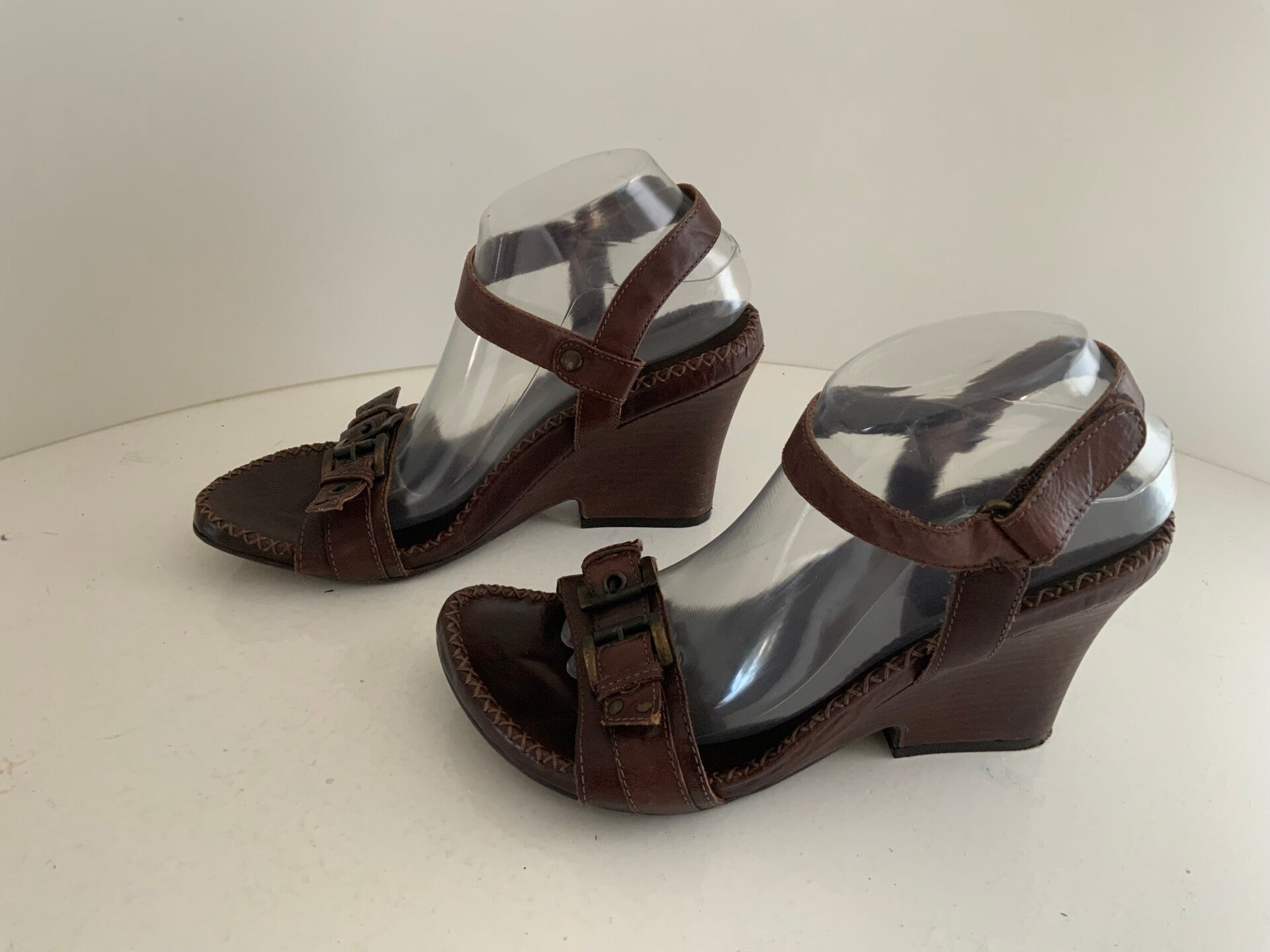 Airstep 40 leren sandalen pumps 324Merk Airstep HakvormHakhoogte 9,5 cm Kleur bruin Binnenvoering leer Materiaal leer Sluiting kliterband
