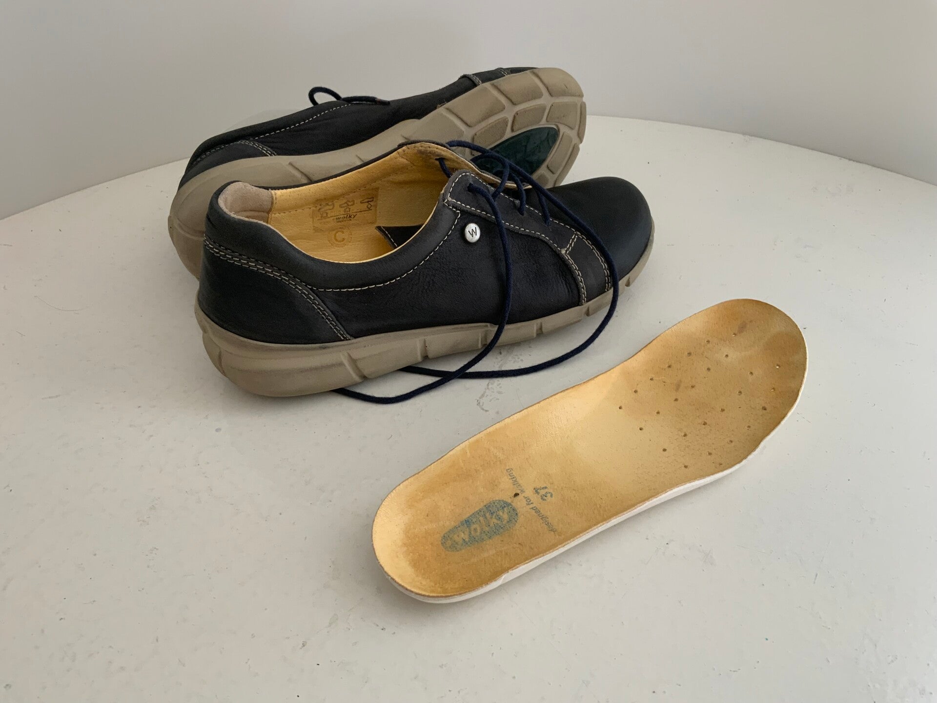 Merk Wolky Hakvorm HakhoogteKleur blauw Binnenvoering leerMateriaal leer Sluiting veters Zooltjes uitneembaar origineel