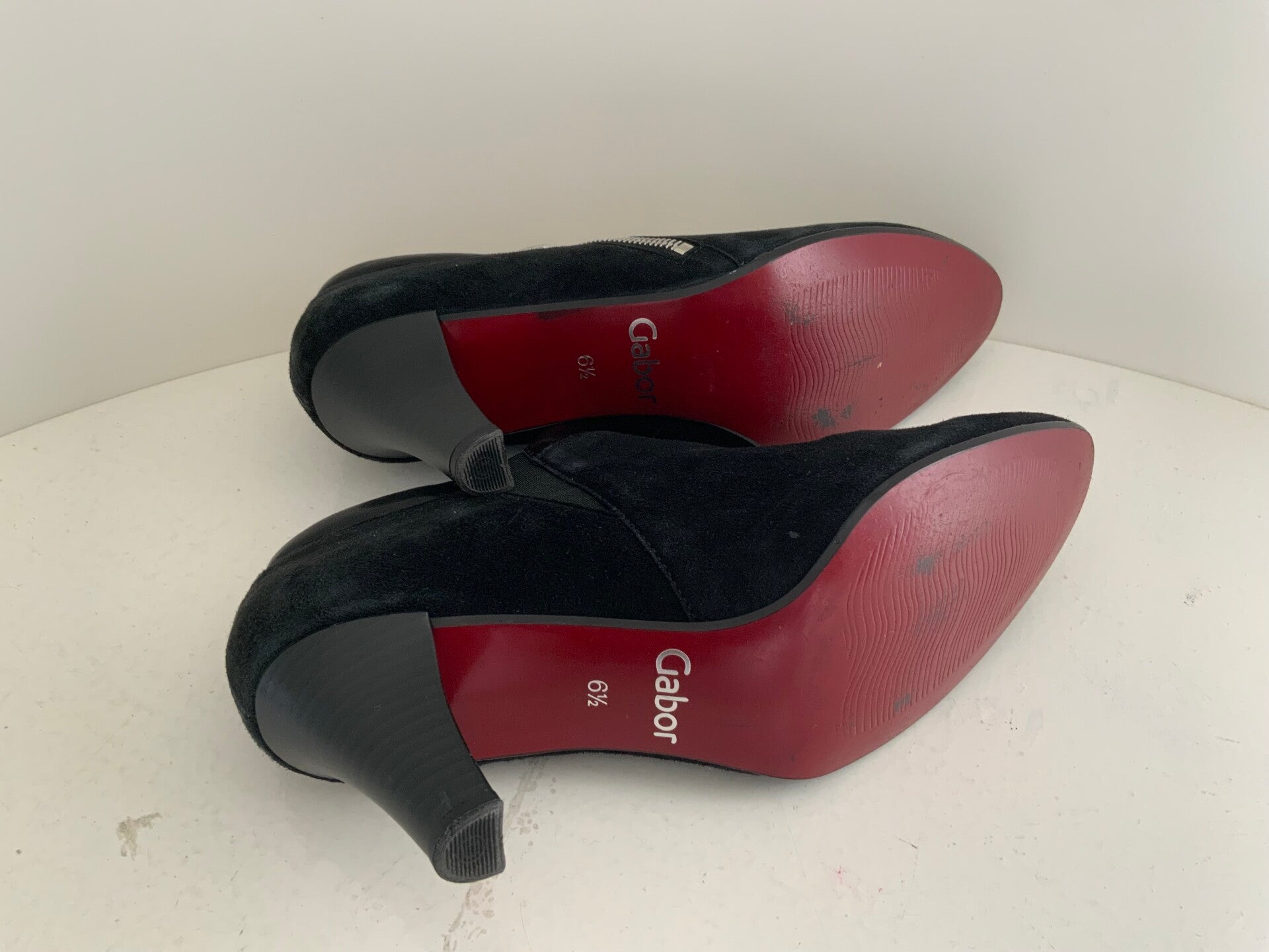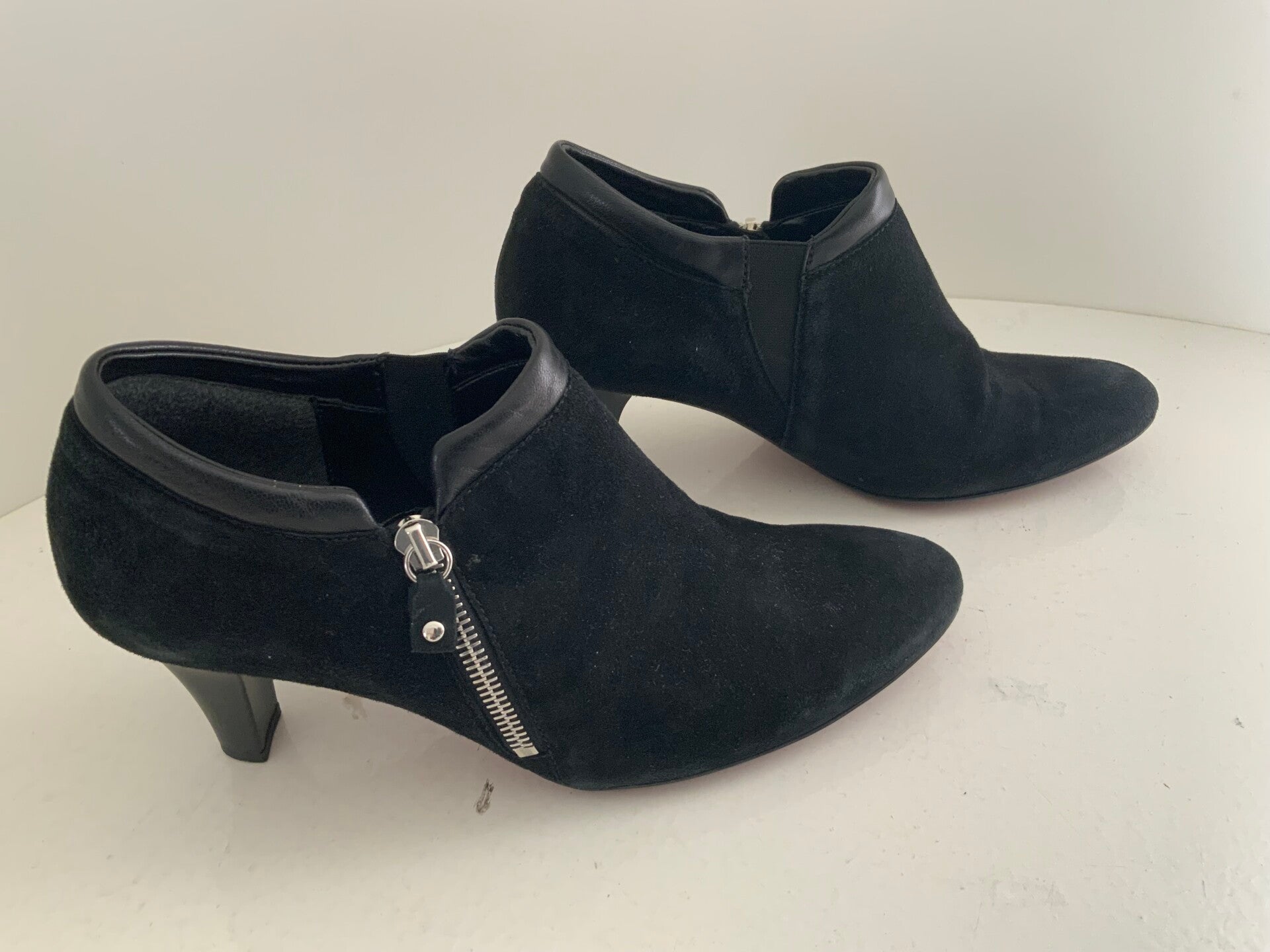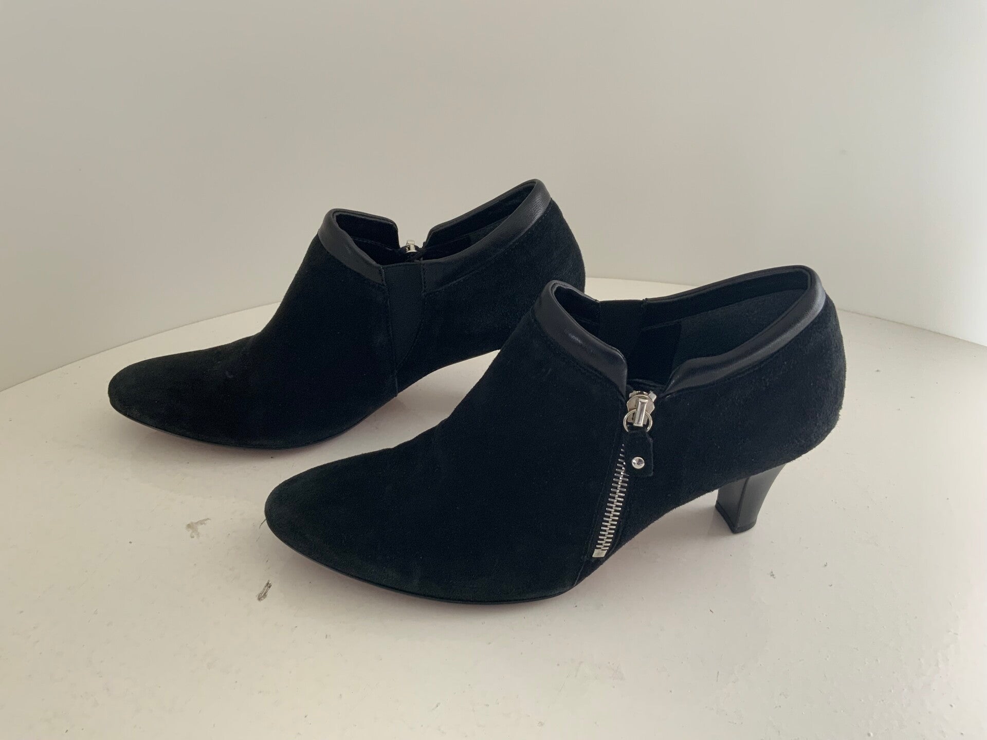 58W) Gabor 40 (6 1/2) zwarte suede leren pumps met rits