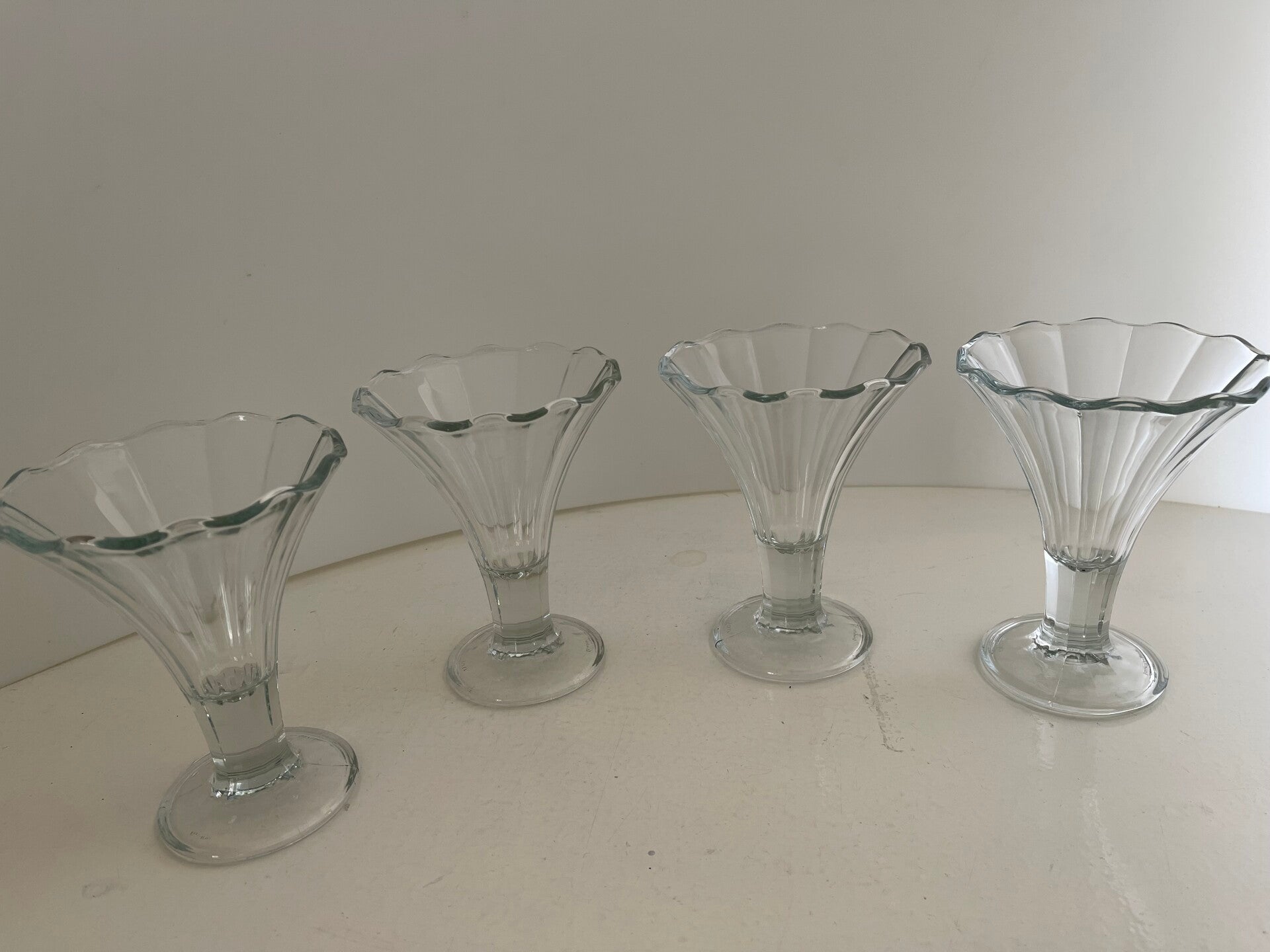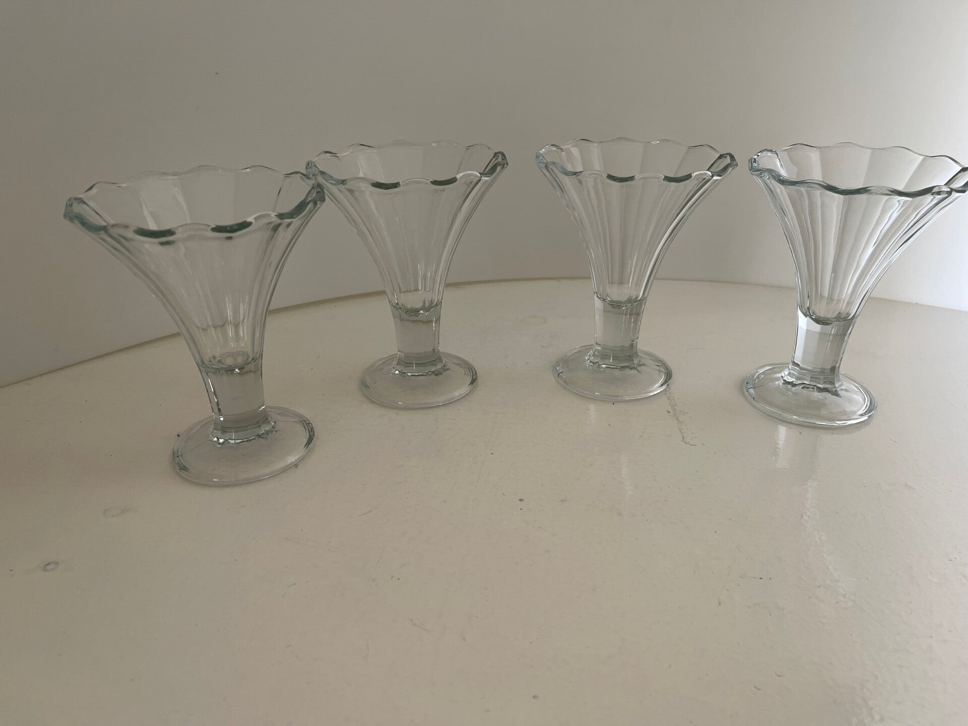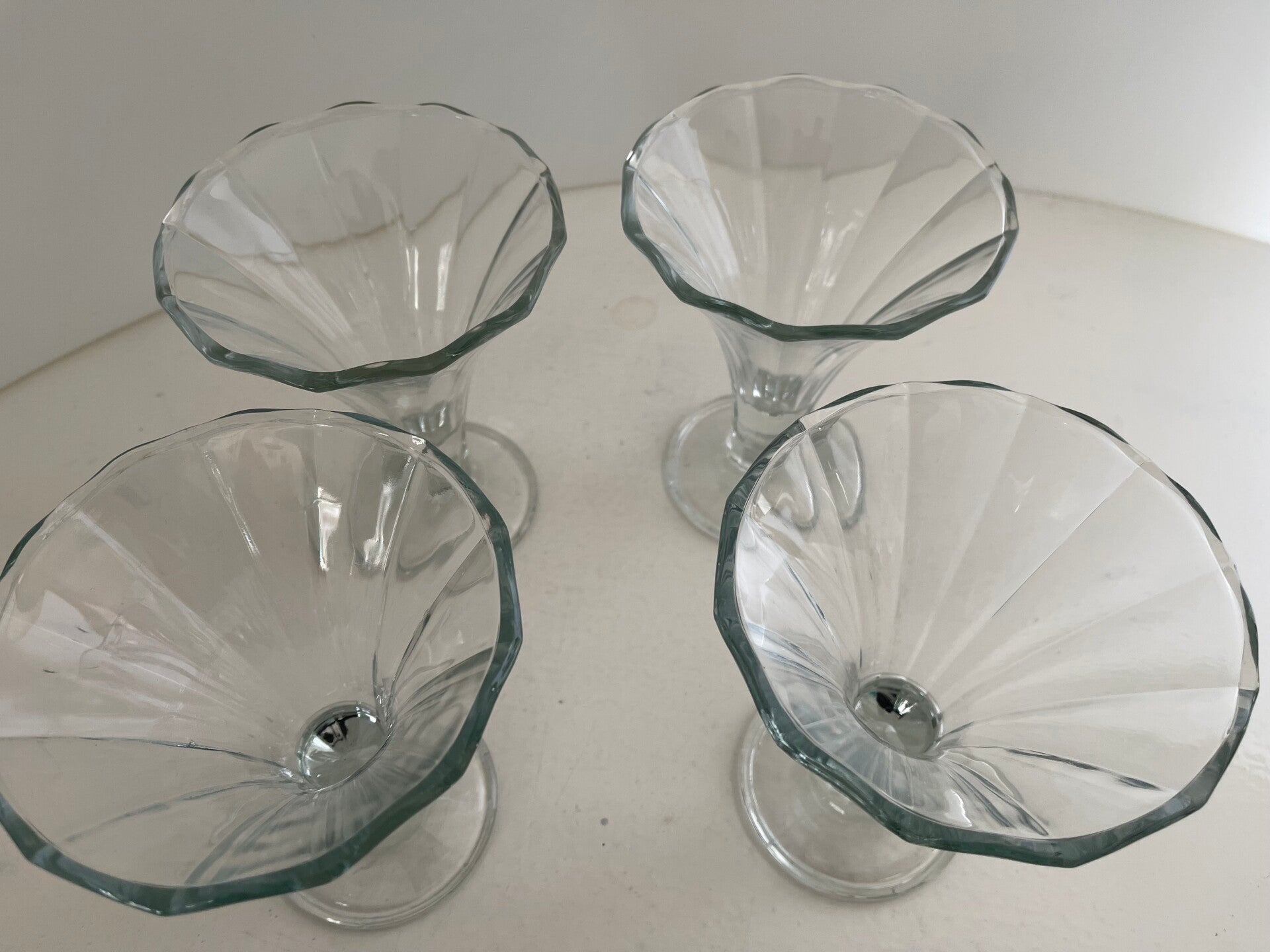 Prachtige Italiaanse zeldzame ijsgerechten / kommen - set van 4 Deze kunstglazen schoonheden zijn tulpvormig en verhoogd op een sokkel. Gemaakt in Italië door Covetro. Dit zijn zeer zware, substantiële stukken, met bijna een pond per stuk.