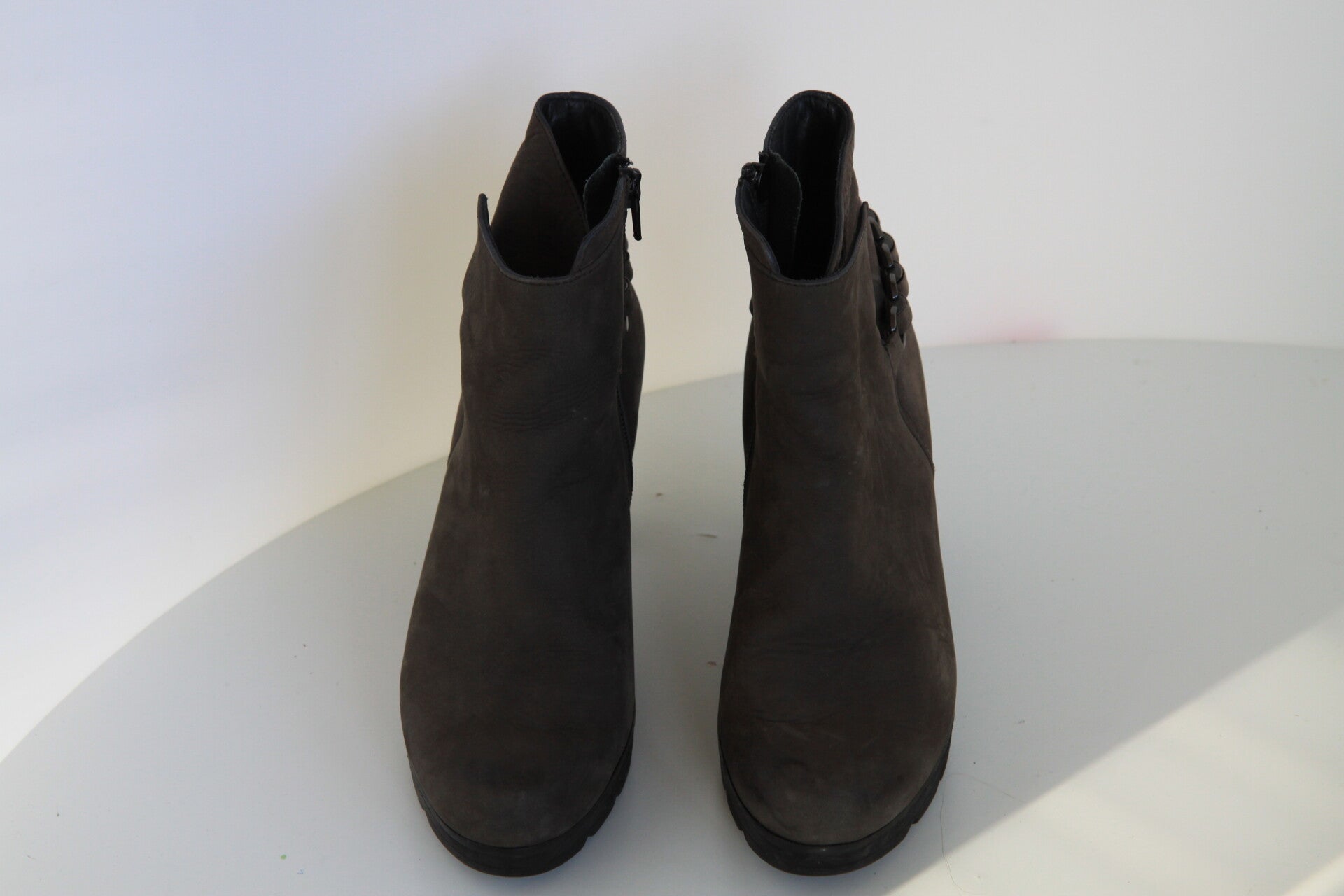 Mooie, nette enkellaarsjes van het merk Paul Green 38 .De laarsjes zijn Ral 8019 grijs bruin kleur Ze zijn in goede staat.gemaakt van nubuck leer en gevoerd van leer .