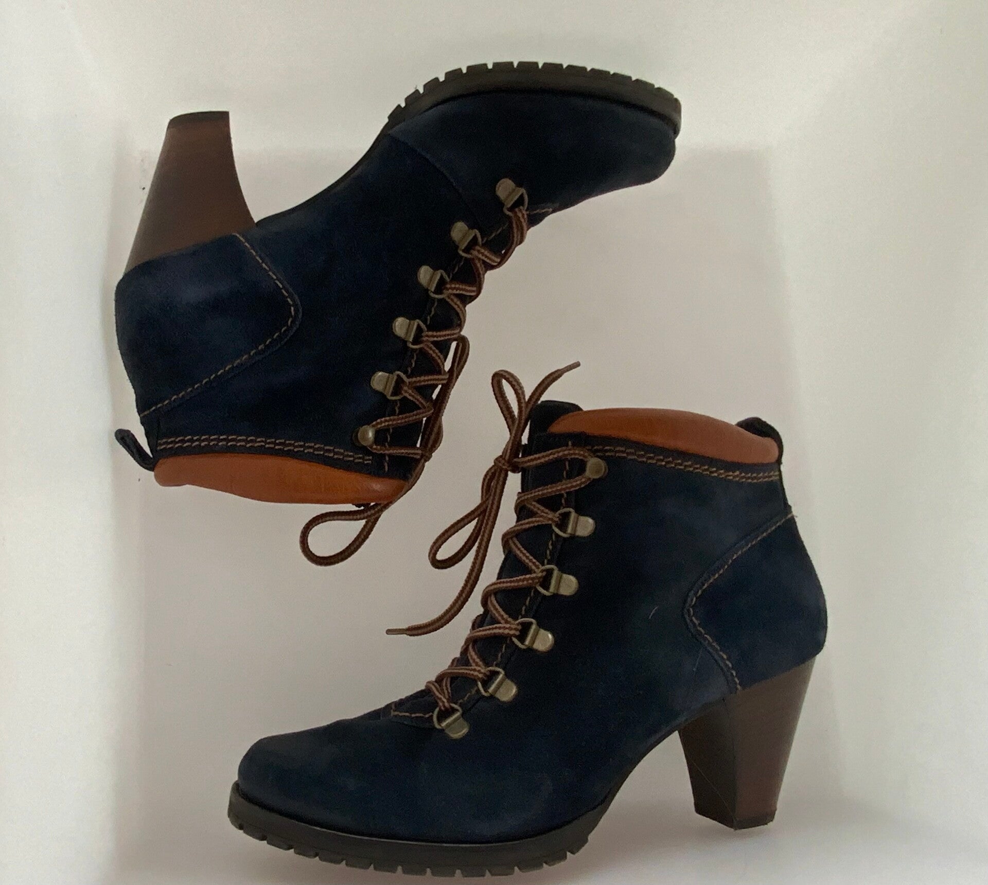 82 W) Paul Green 7 (40,5) blauw en bruine botines pumps