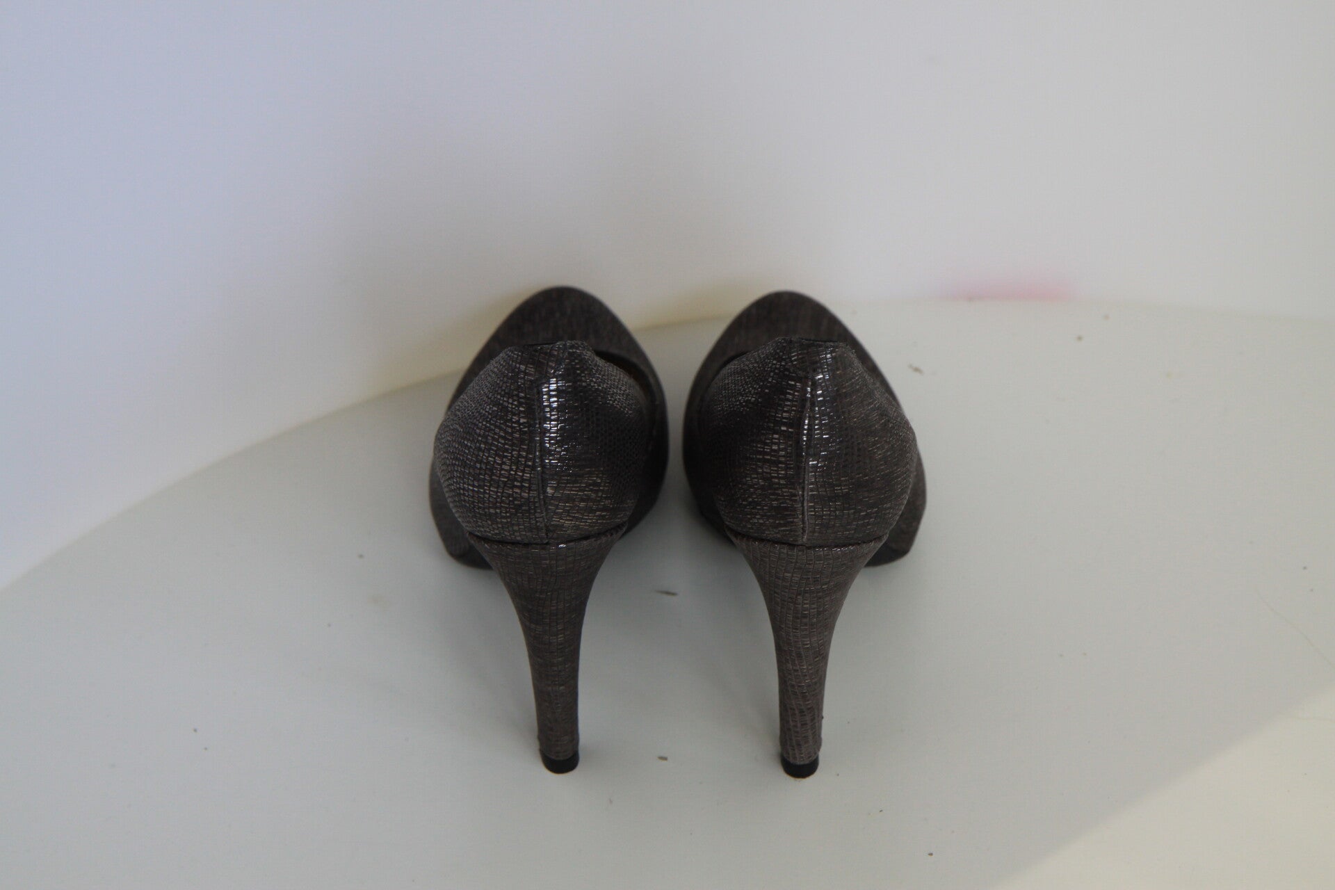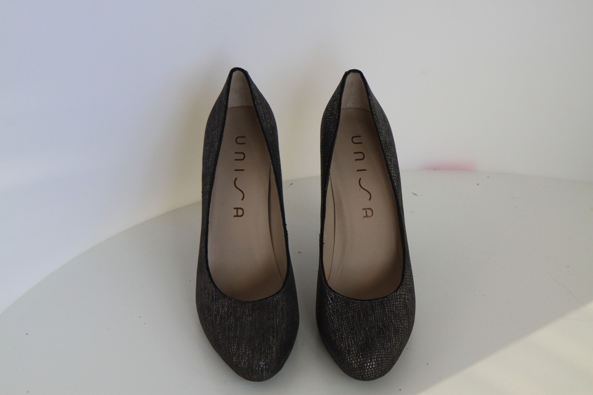 213) Unisa Reptielprint Pumps Maat 41 zwart en zilver kleur