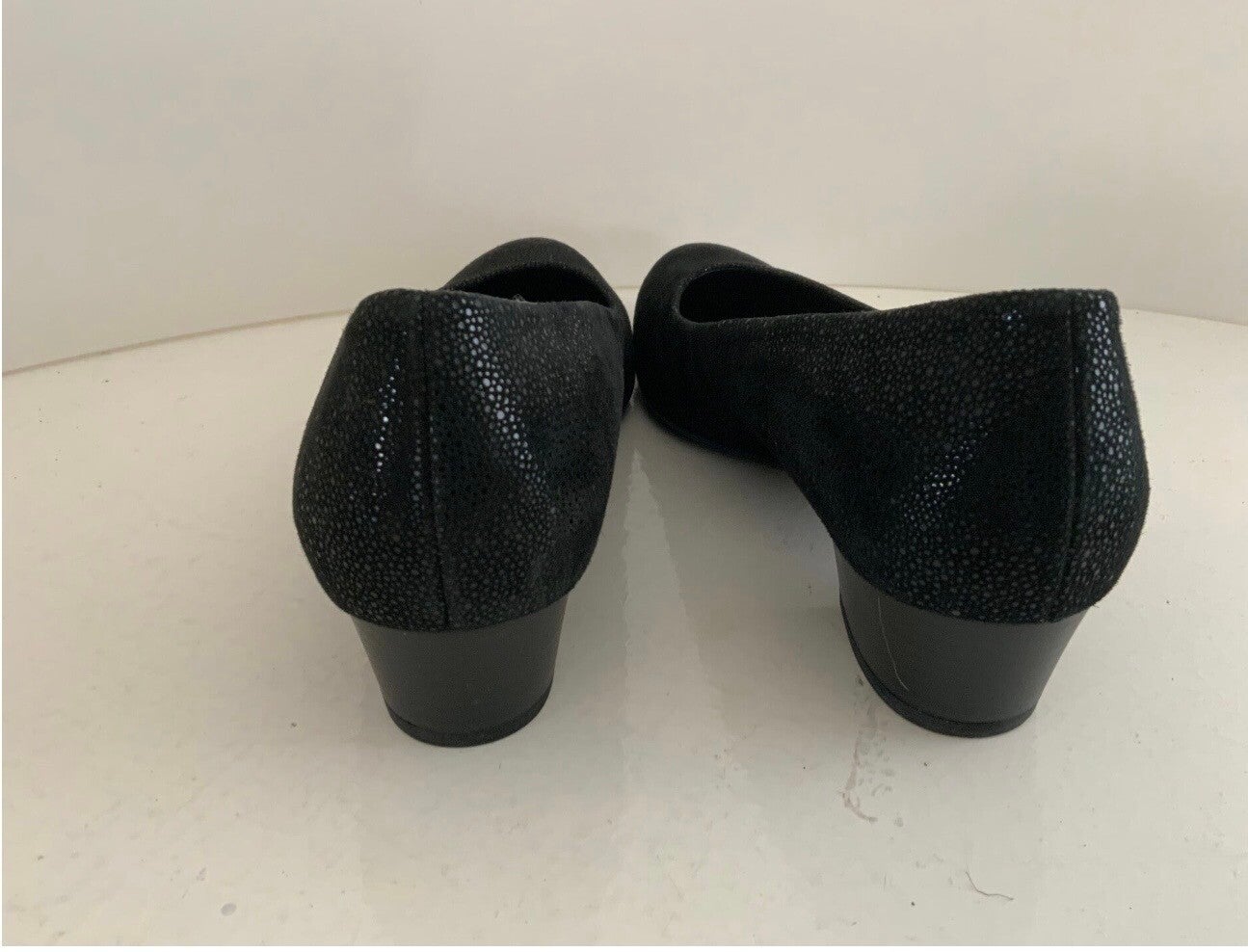215) Gabor 40 G leren instappers zwarte met glitters Merk gabor Hakvorm blohaak Hakhoogte 4Kleur zwart Binnenvoering leer Materiaal leer met kliter Sluiting