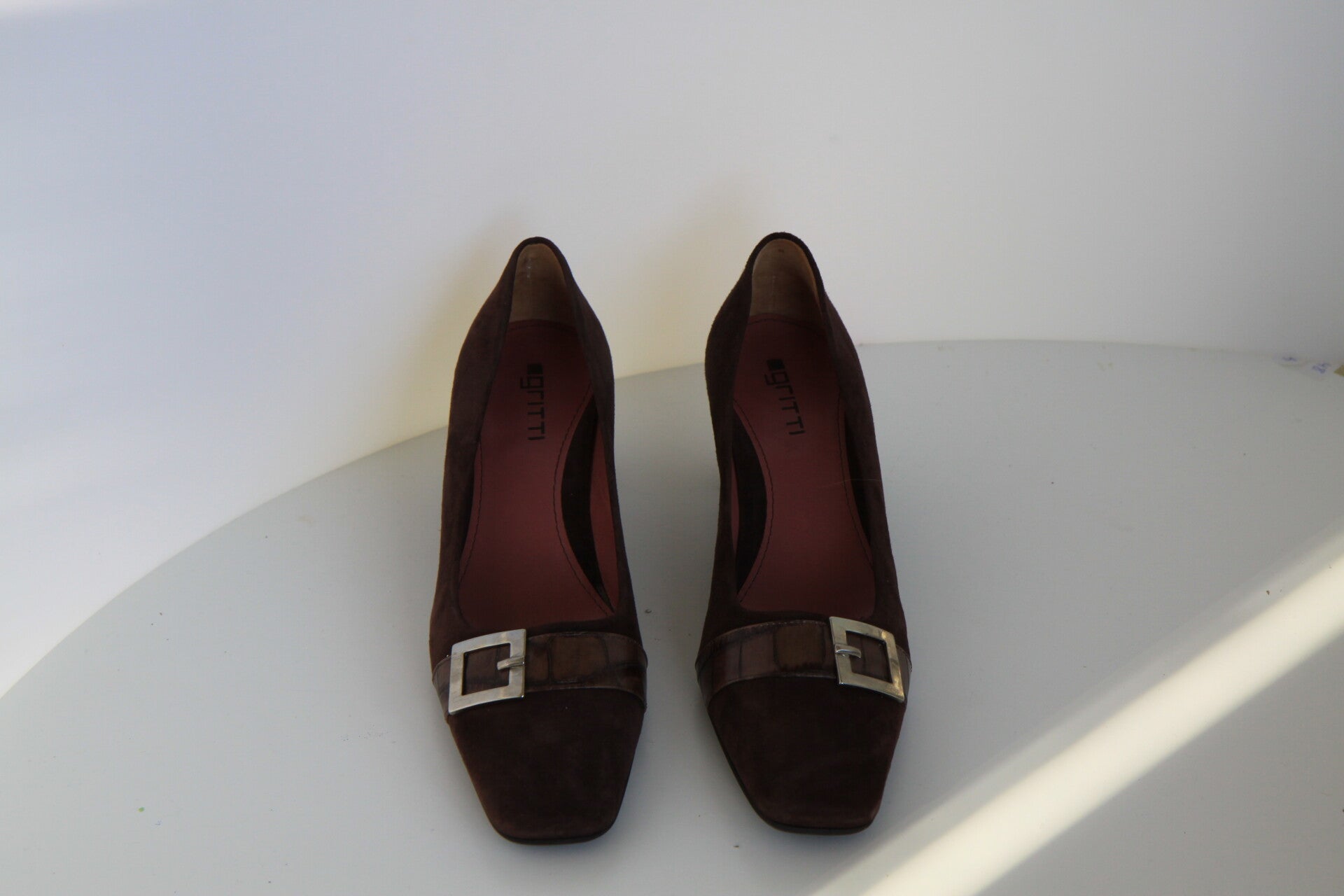 216) Gritti 39 suede bruine leren instappersSchoen is gemaakt van suede leer gevoerd van leerhaakhoogte 4,5cm