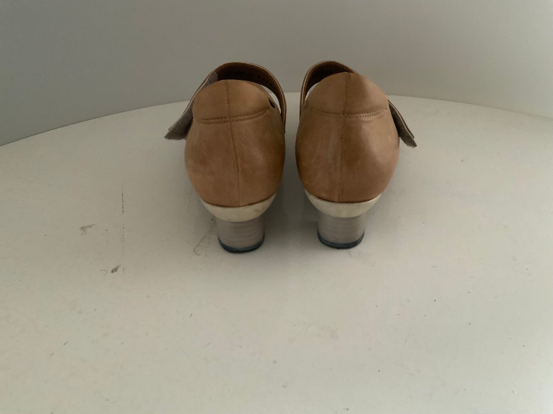 233) Think 38,5 bruine leren band pumps schoenen.
