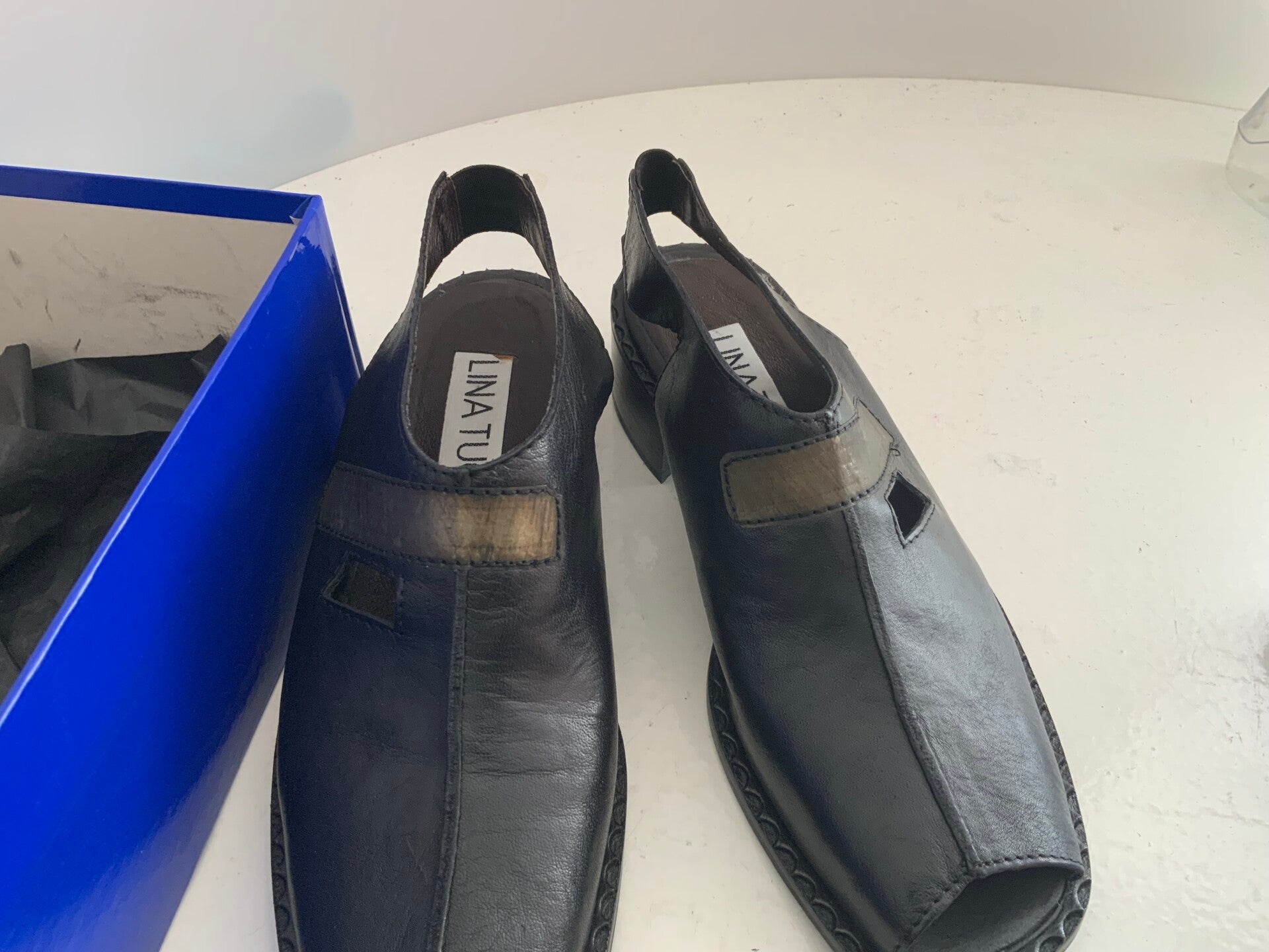 246) Lina Tucci 38 zwarte leren slingback sandalen