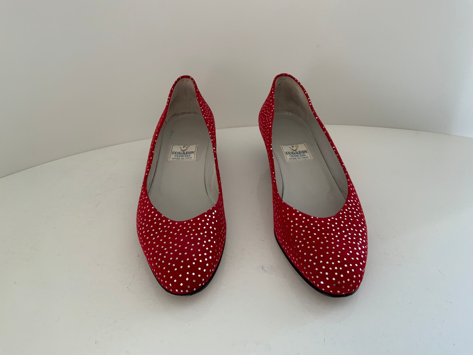 255) Fogarin Venecia 39,5 rood suede met zilveren stippen