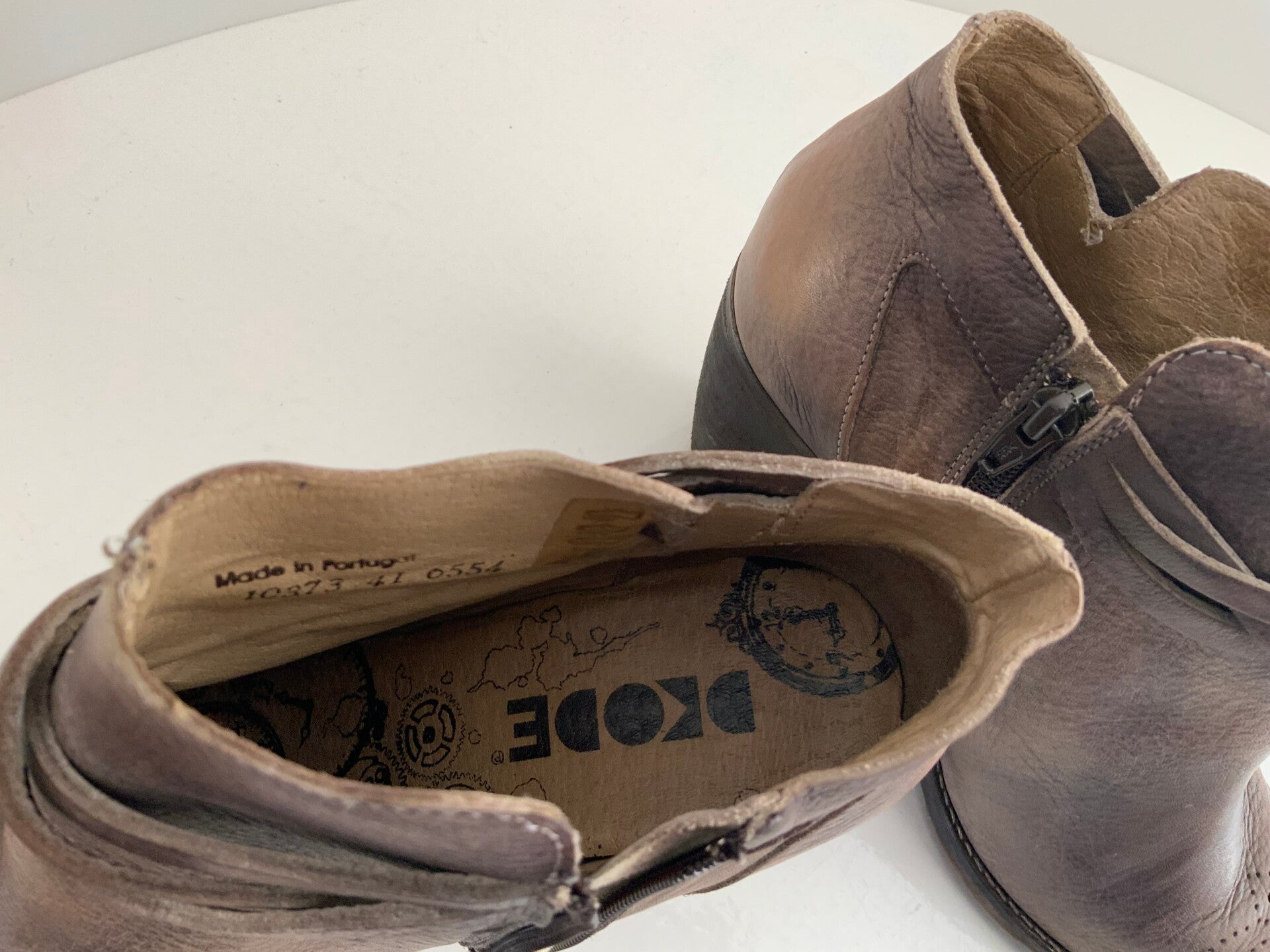 DKODE, gekenmerkt door een wikkelaan de enkel, een blokhak en een geperforeerd patroon op de neus.