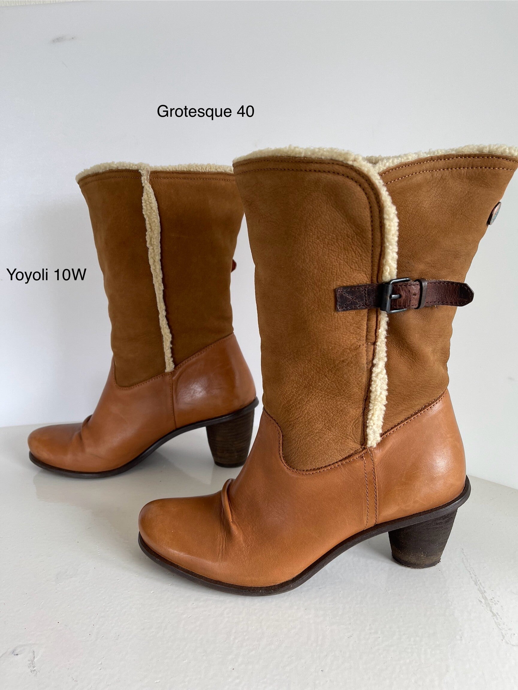 10W) Grotesque 40 bruin leren laarzen .Laarzen zijn gemaakt van 2 soorten leerSuede voering met imitatiewol Voetbed van leerHakhoogte 6 cm