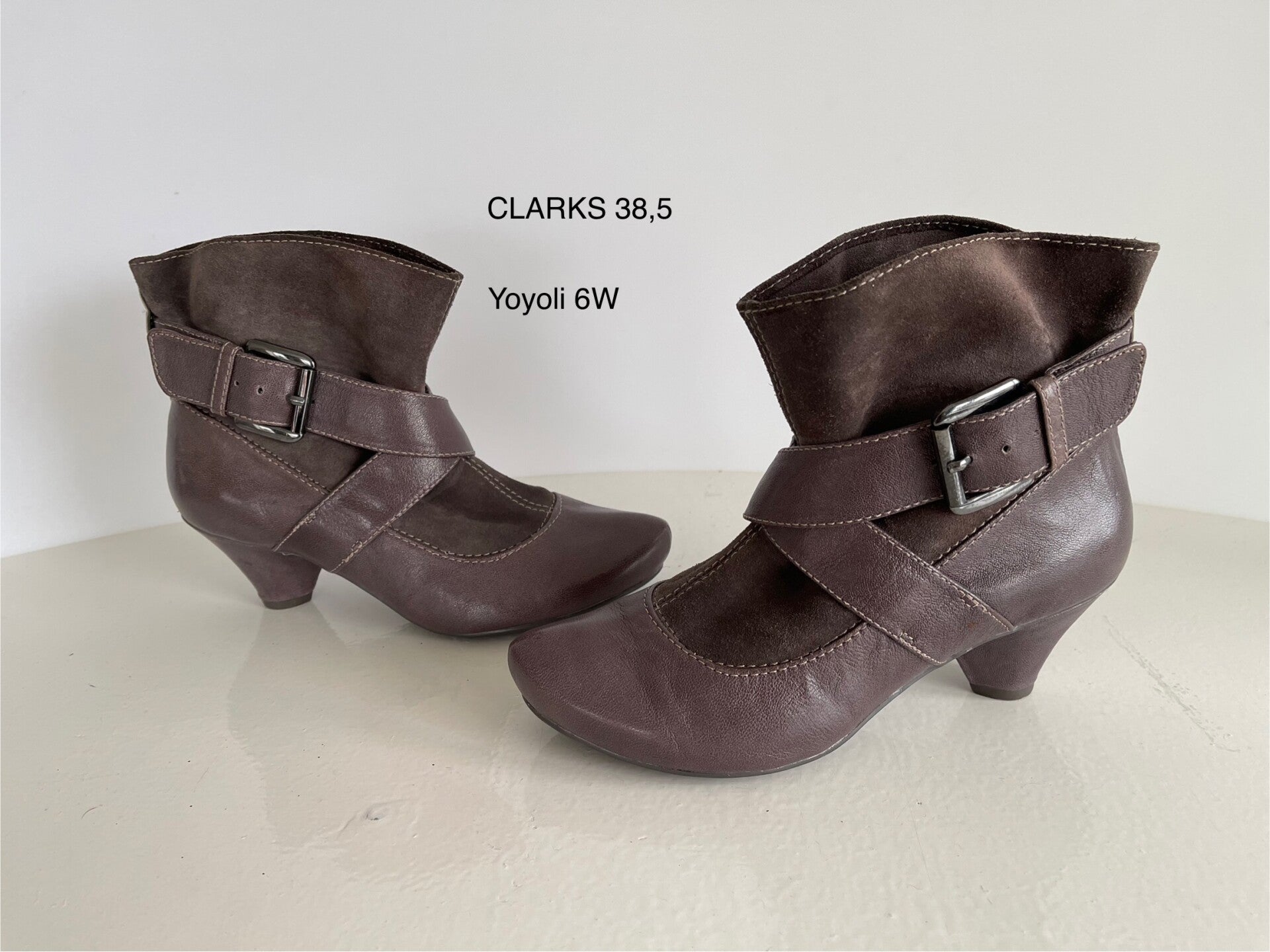 6W) Clarks 5 1/2 (38,5) donkergrijs leren enkellaarzen.