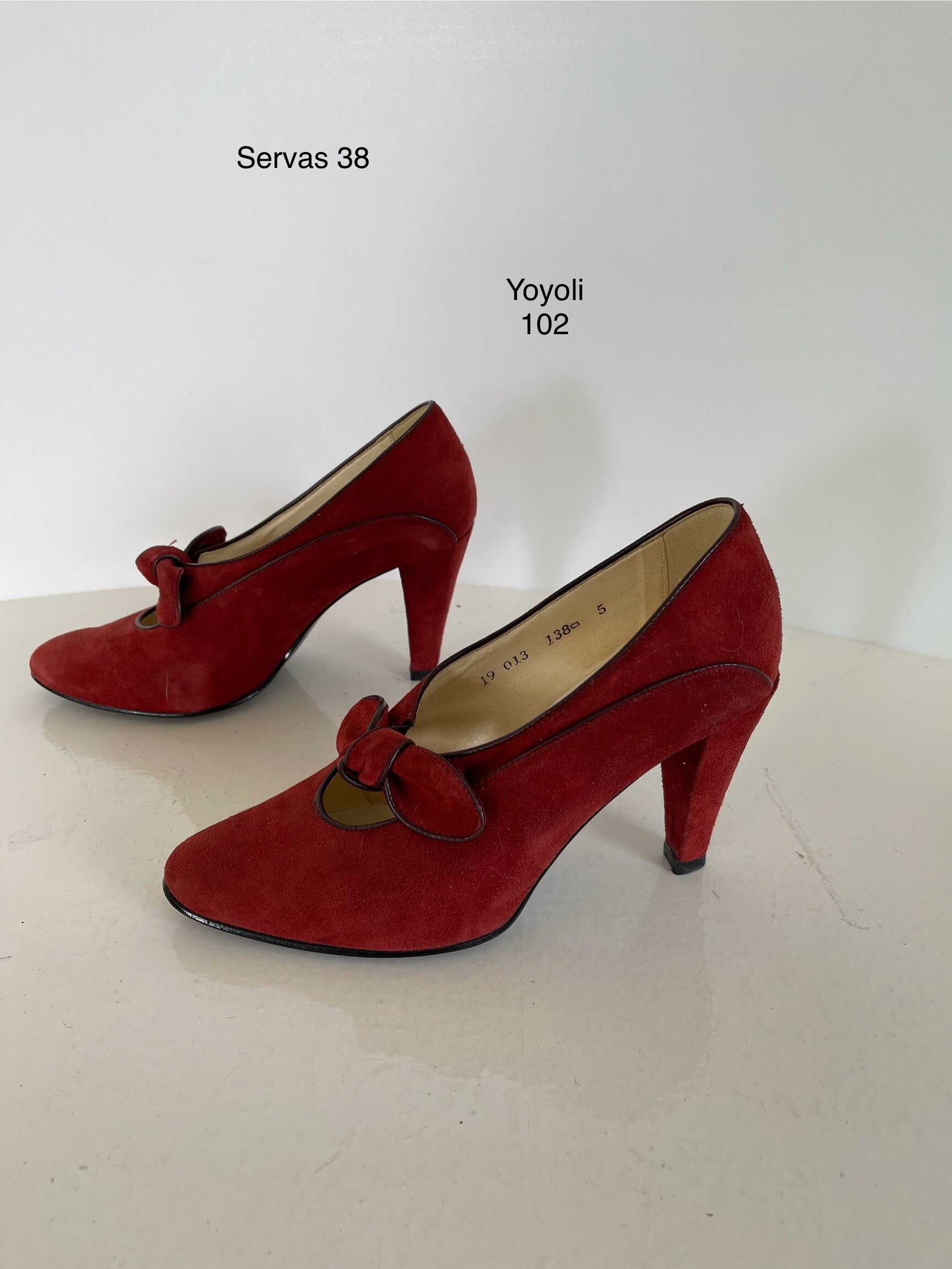 Servas 5(38) roodbordeaux suede leren pumpsMooi vintage model zo goed als nieuw De schoenen hebben een bies rond de schoen en een met suede beklede hakHakhoogte 9 cm