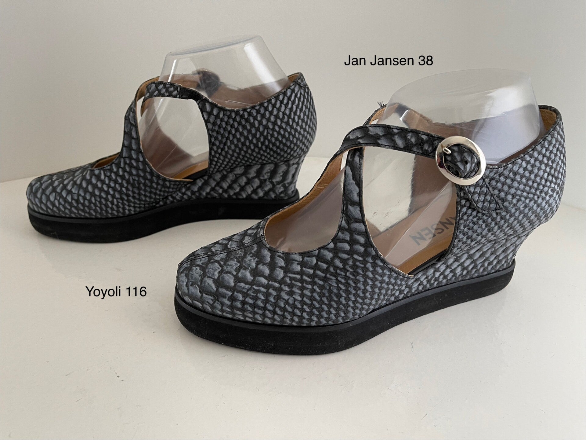 116) Jan Jansen 38 grijs in zwart slangleerprint (nieuwstaat)