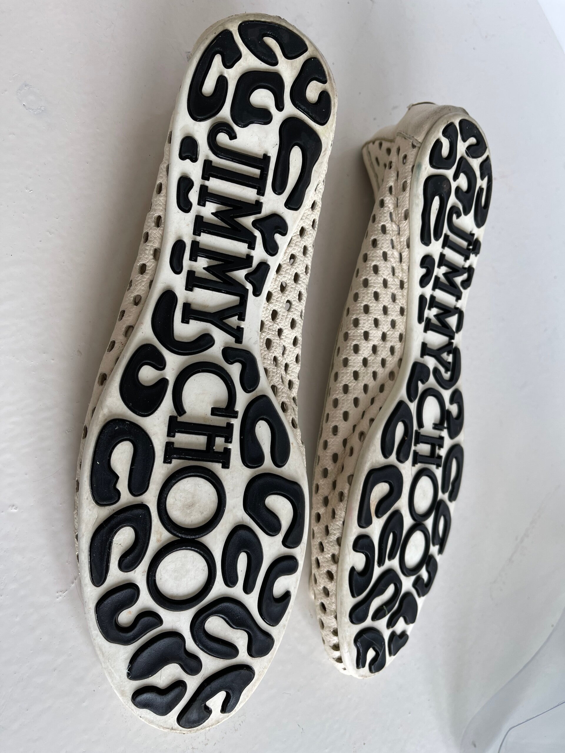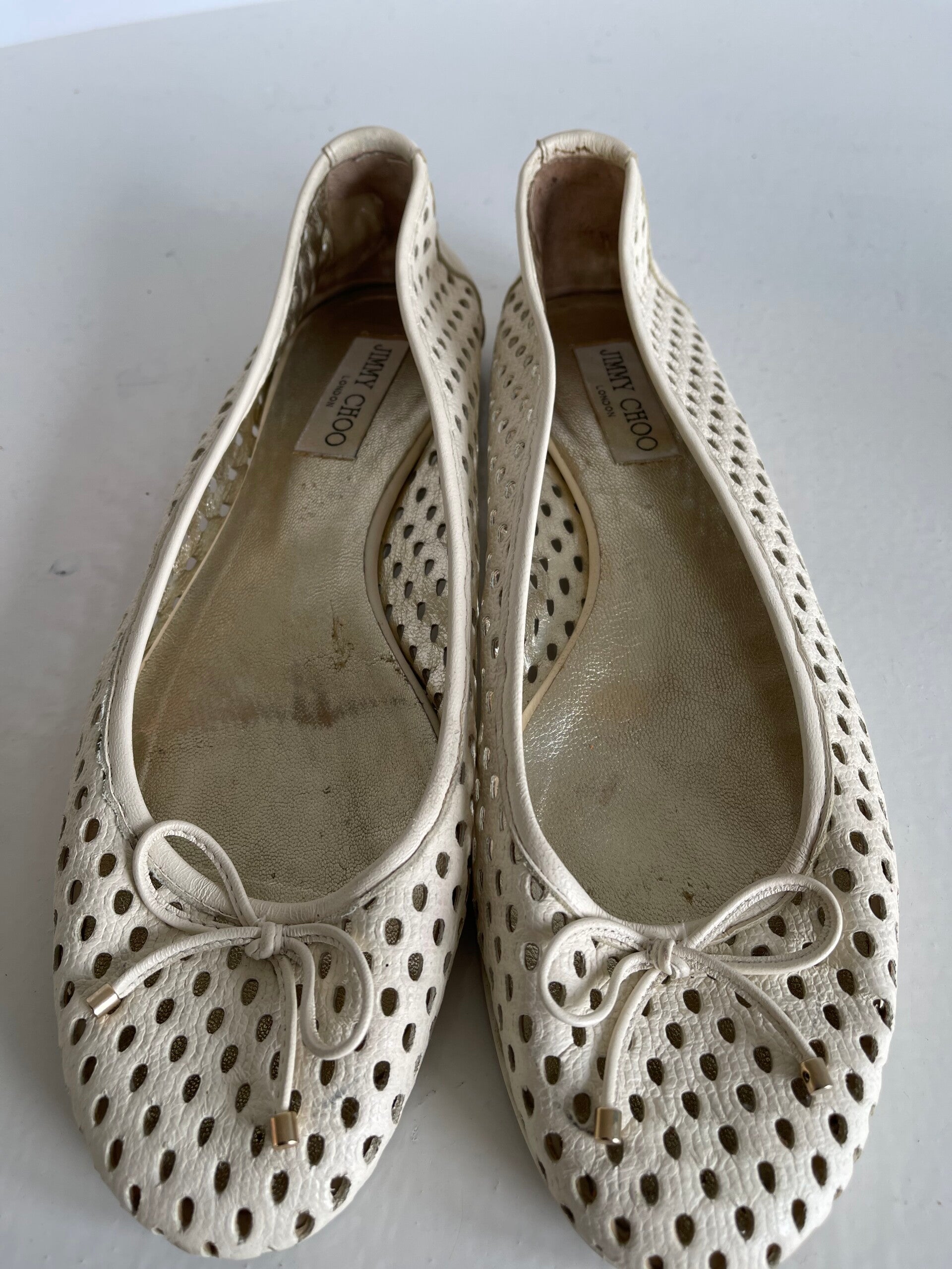 Mooie leren ballerina's van Jimmy Choo in de kleur off white. Maat 40. De schoenen zijn gedragen, maar nog in goede staat. Perfect voor een stijlvolle en comfortabele look!