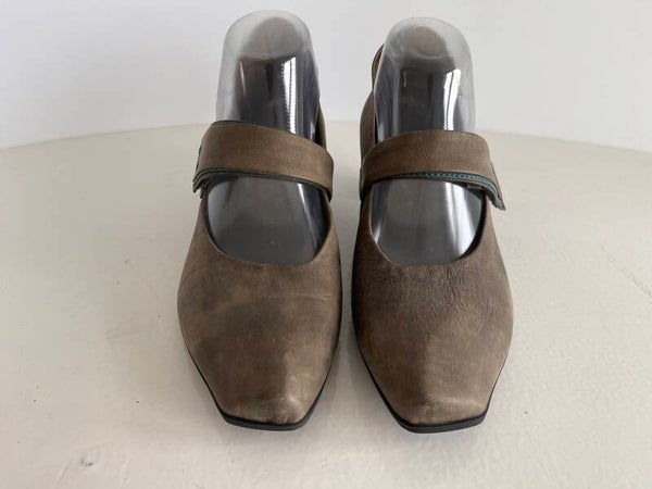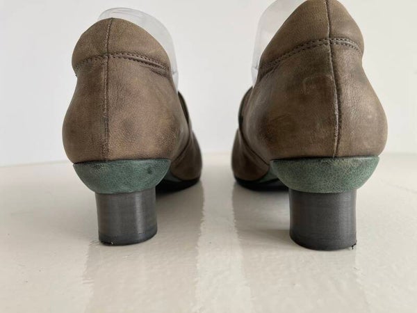 24) Think 38,5 bruin/olijfgroen leren instappers